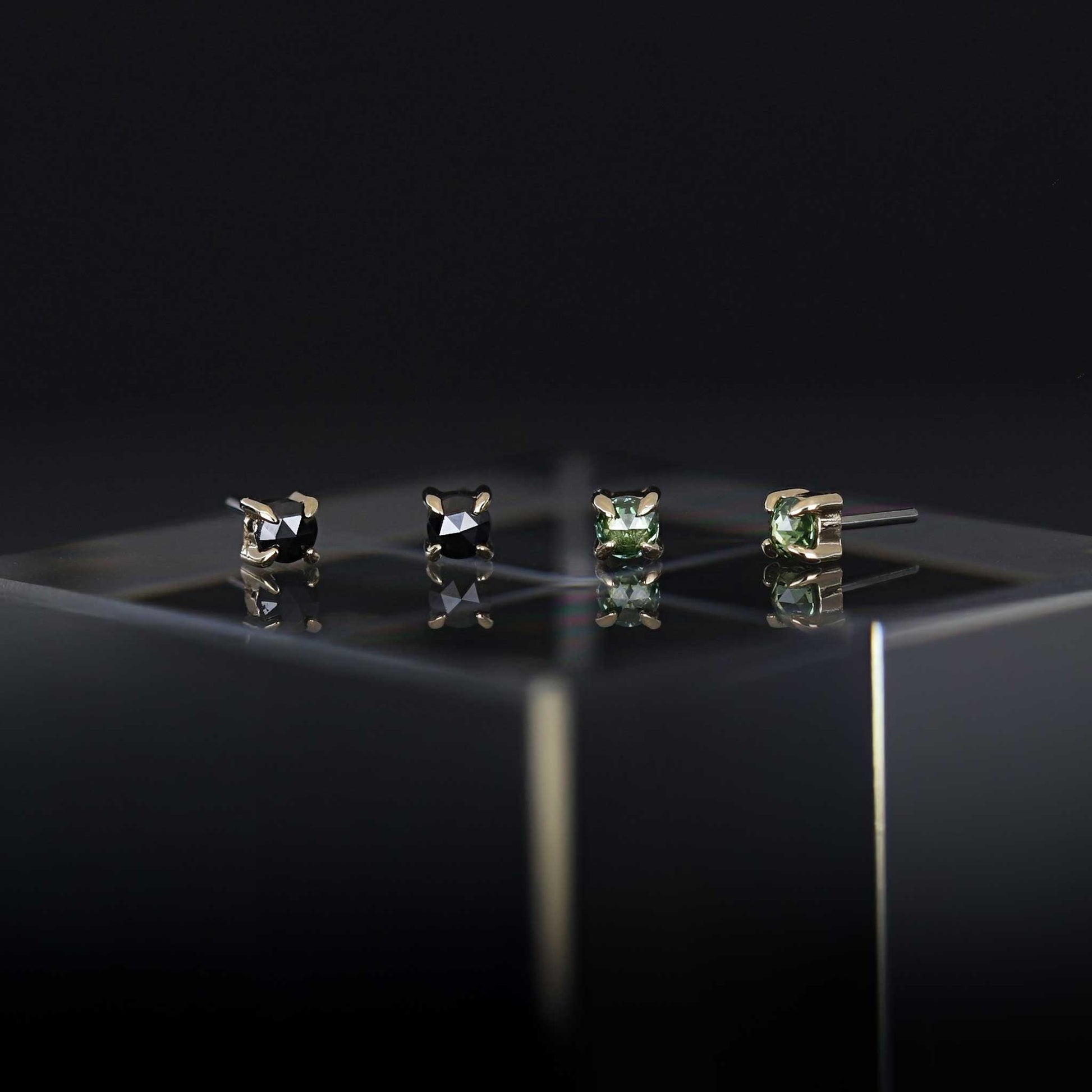 A jewelry essential, this petite stud features a 2mm rose cut diamond secured in a claw 4-prong setting. The rose cut’s faceted surface reflects light softly, giving a subtle sparkle that feels timeless and understated. Crafted in 14k solid gold, the minimal 3-prong design keeps the focus on the diamond itself, making it an everyday staple that layers seamlessly with any stack.
