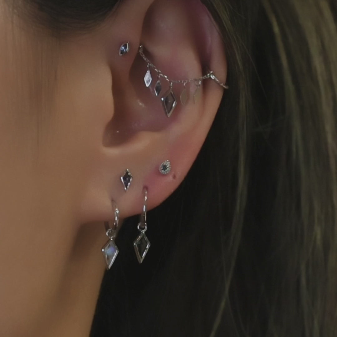 Introducing "Clio," our latest exquisite addition to the collection of flat back studs. Crafted from 14k solid gold and adorned with a genuine, tiny 1.5mm black diamond, Clio is the epitome of comfort designed for long-term wear. Its tear drop silhouette boasts brilliant milgrain details, offering a touch of vintage charm. This little stunner stands out on its own or pairs seamlessly with your other earrings, making it the perfect piece to enhance your curated ear stack.