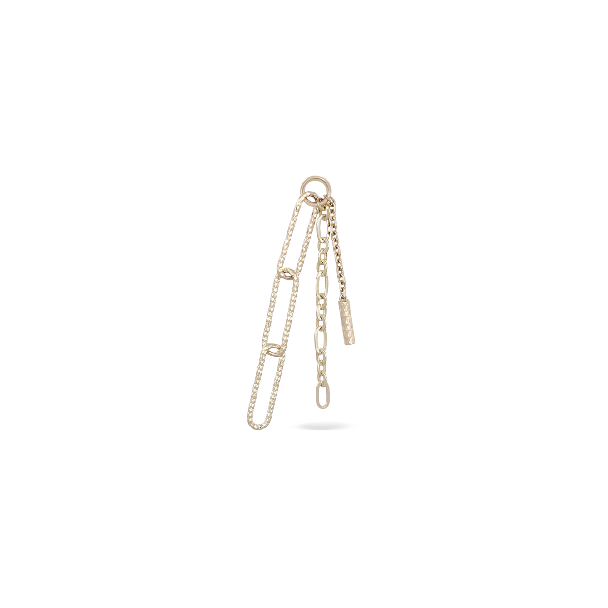 Part of our triple mixed chain charm series, the Luce plays with scale and texture through three distinct chains—a long faceted paperclip link, a refined oval chain, and a slender detailed strand. Measuring 24mm in length, it flows in balance and catches light with bold presence.