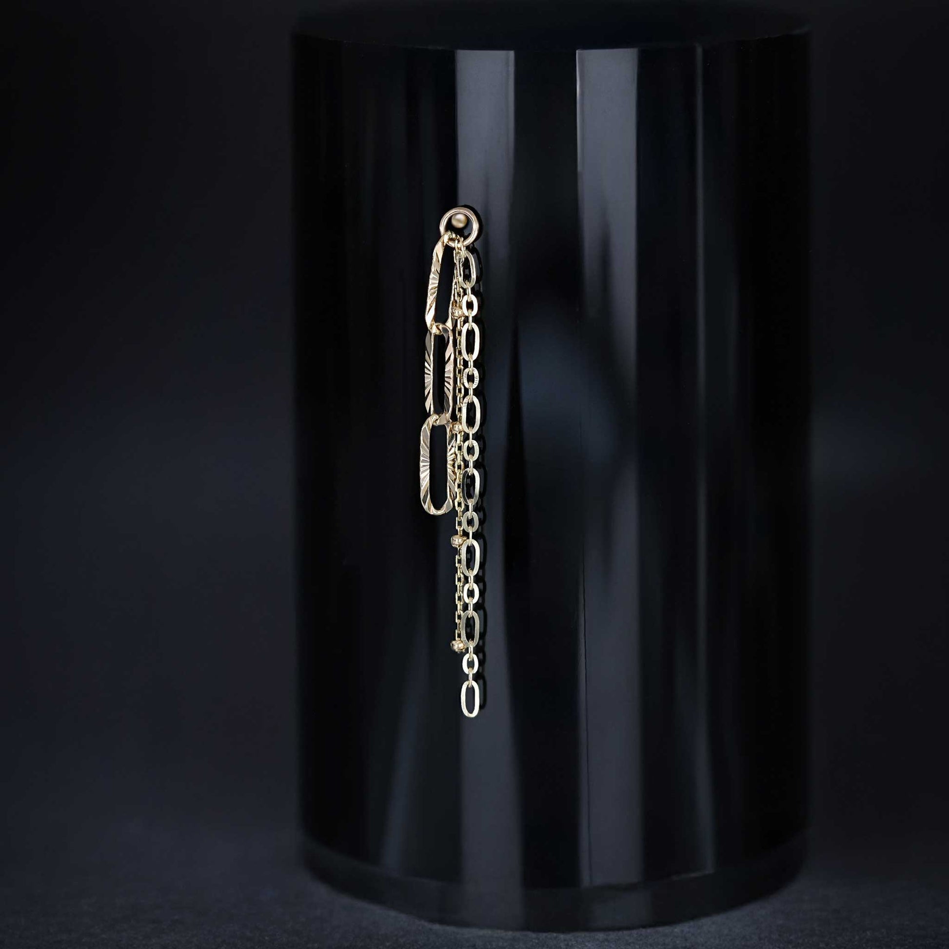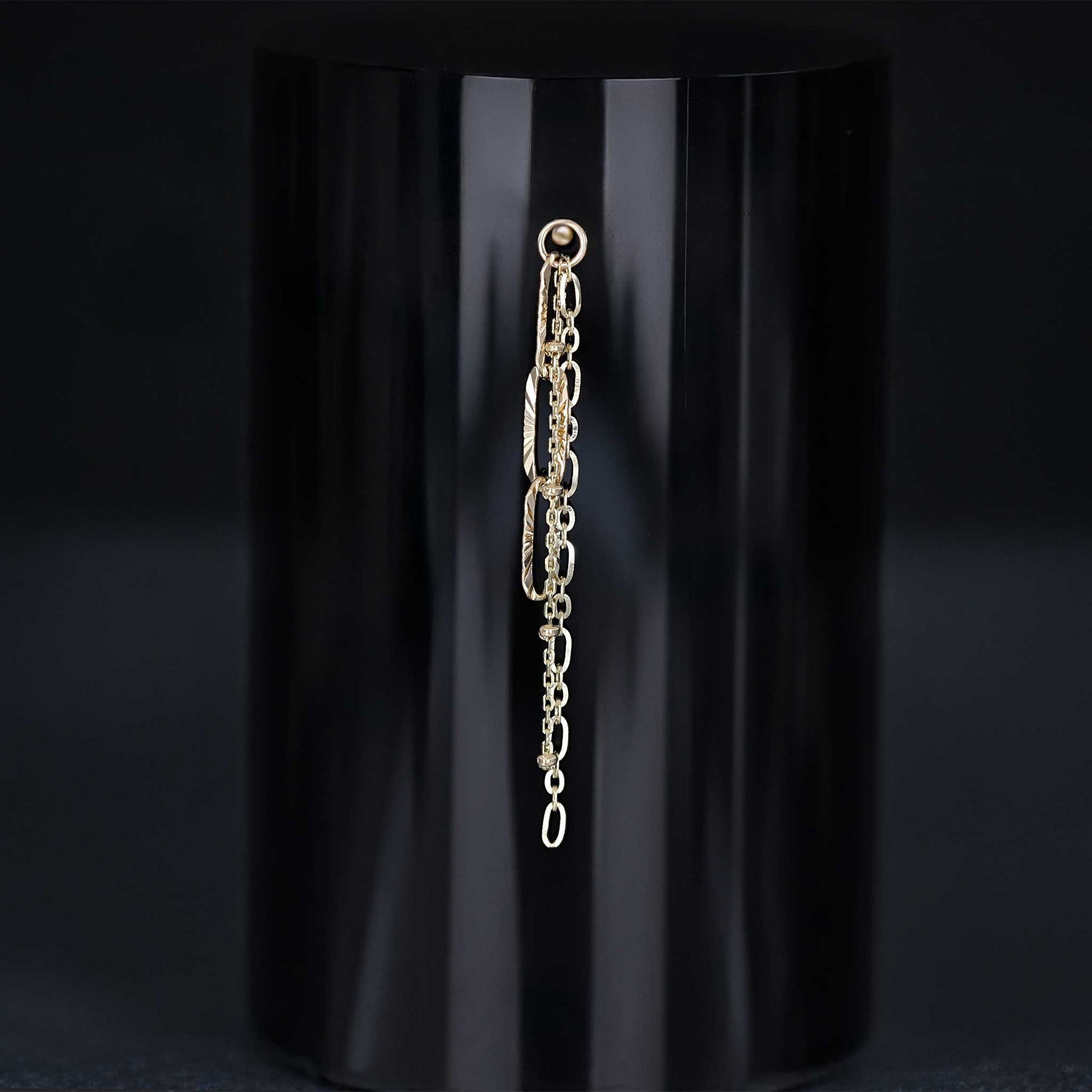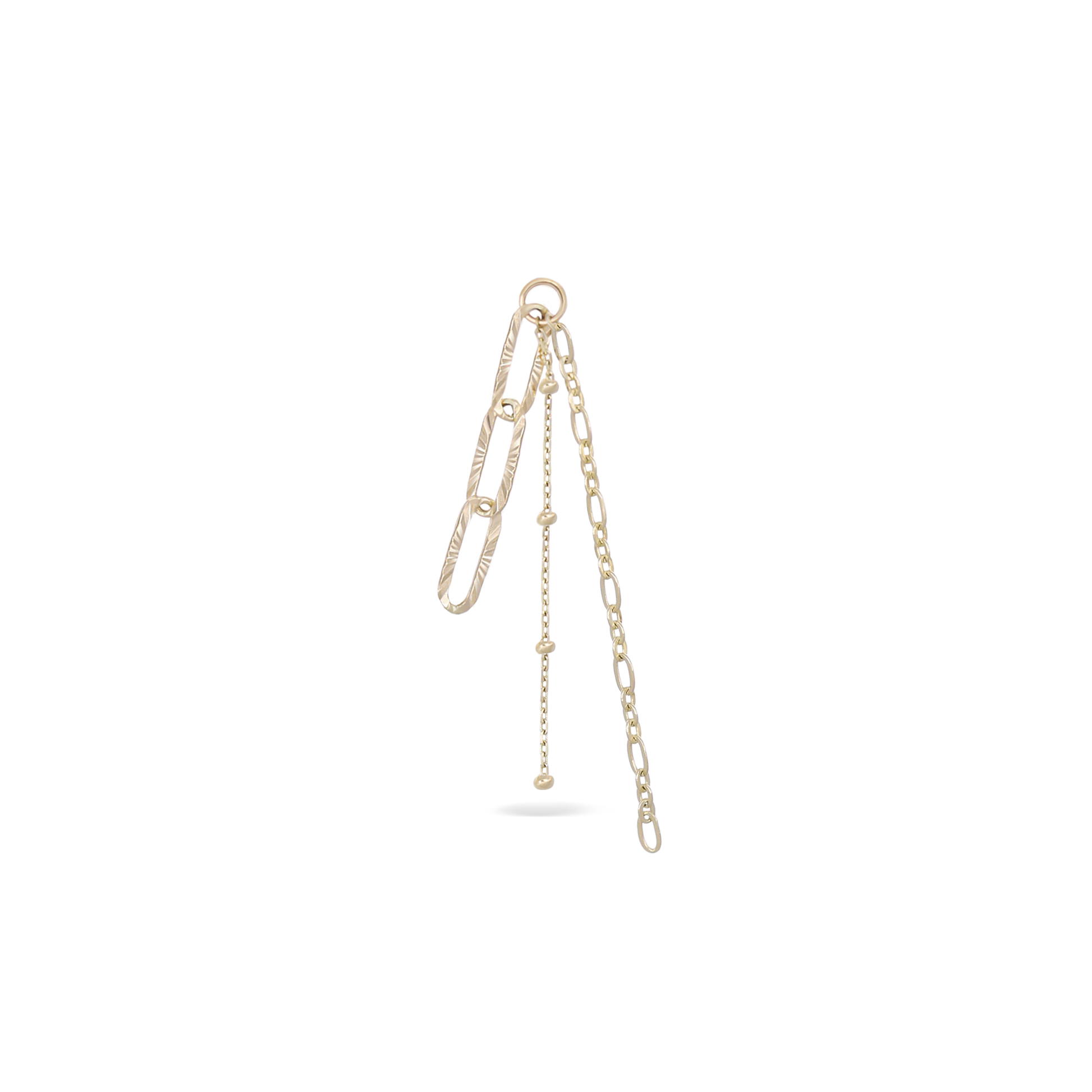 Part of our triple mixed chain charm series, the Rondo balances three distinct chains into one design. A bold diamond-cut textured paperclip link, a ball-accented strand, and an oval-link chain move together in harmony, creating a drop with rhythm and light.
