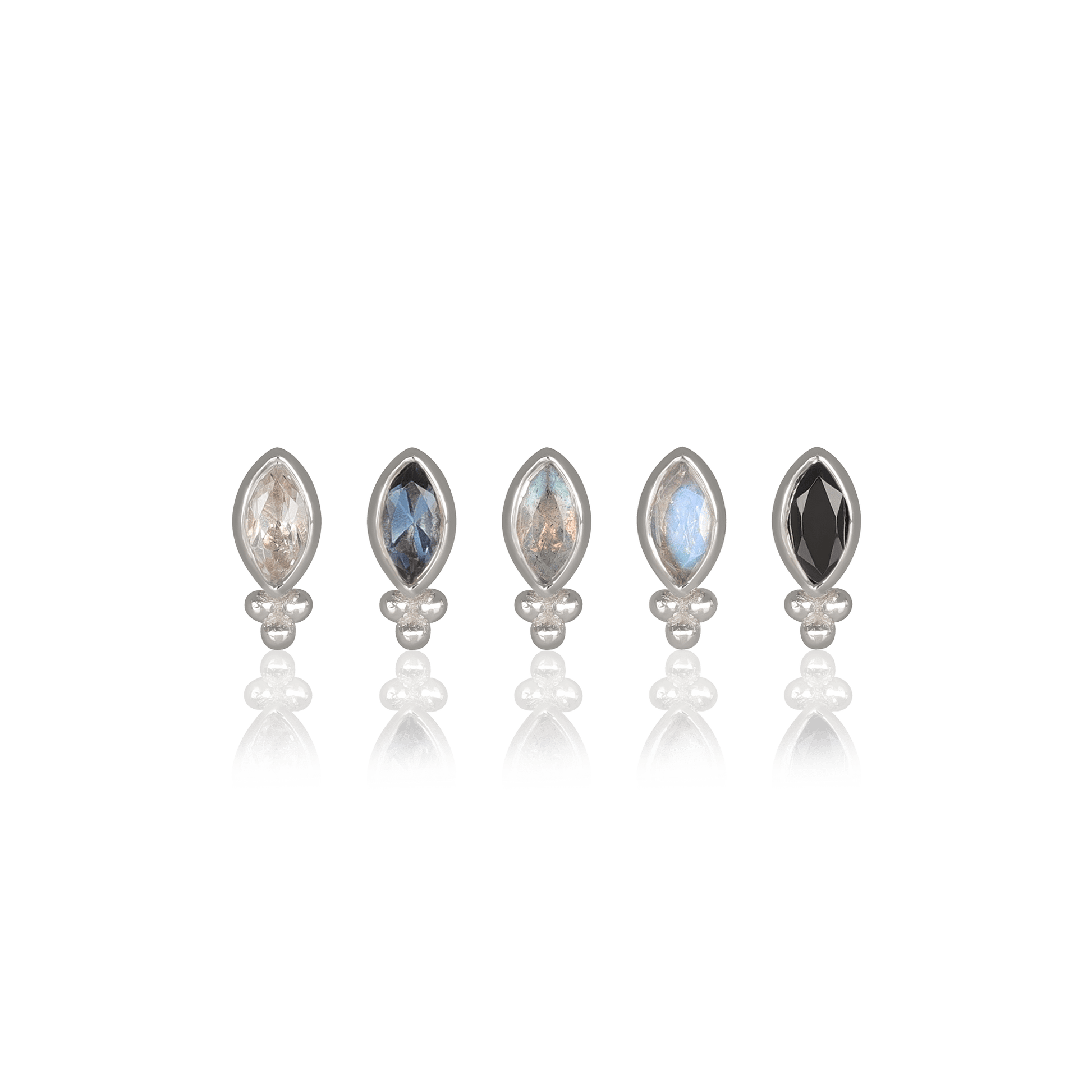 Rue • 14K Gold Tiny Marquise Cluster Natural Gemstone Flat Back Stud