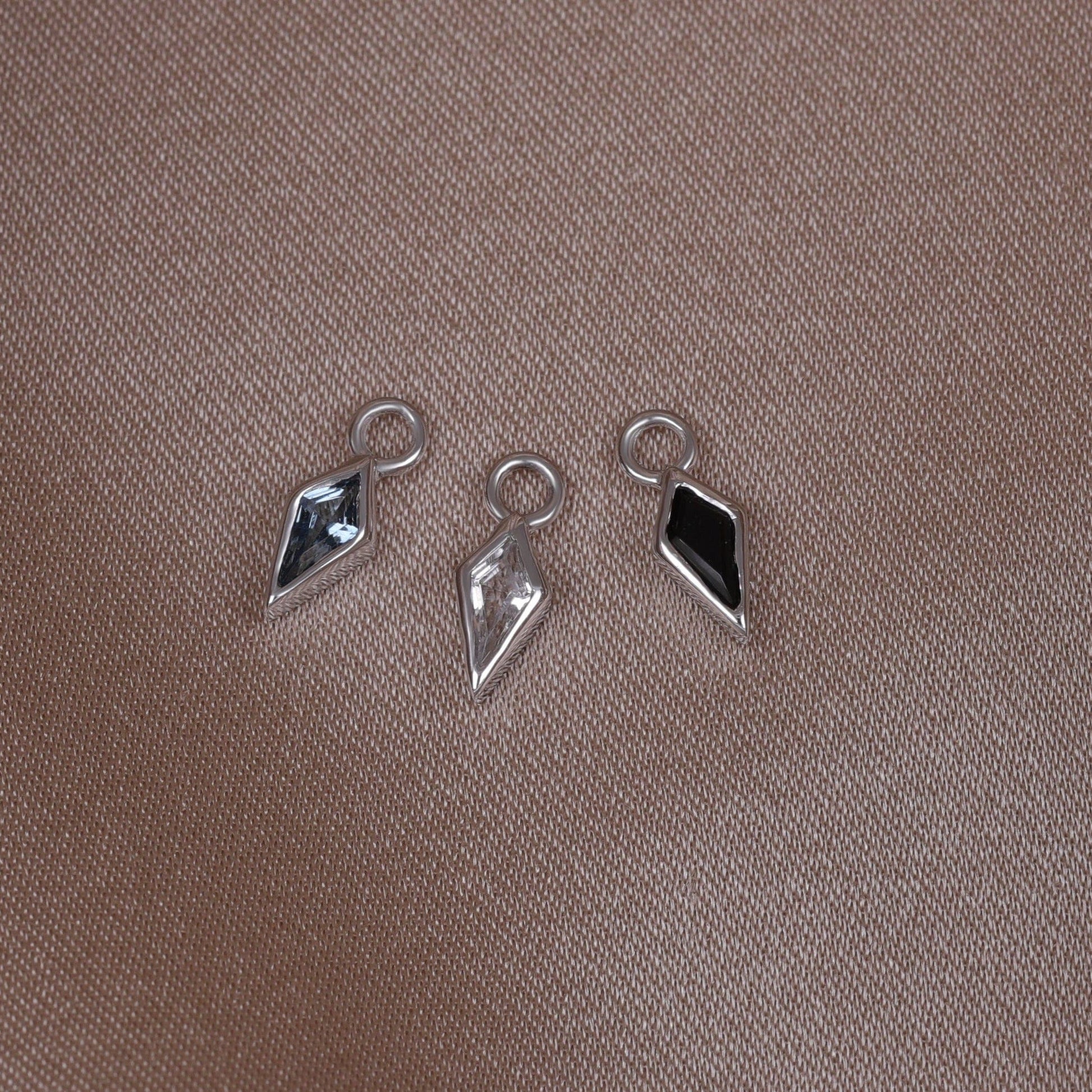 Discover 'Zenith', our captivating Kite Cut Mini Gemstone Hoop Charms.Handcrafted by skilled artisans, these charms showcase one-of-a-kind genuine gemstones, each uniquely beautiful. Their kite-shaped design adds a modern, edgy twist, making them perfect for anyone looking to enhance their style with a piece that's as individual as they are.